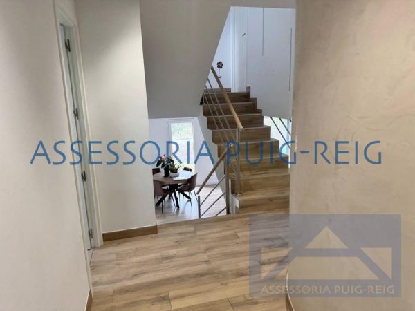 Casa de tres plantes amb accés còmode mitjançant mitges escales. Jardí privat de 300 m amb espai a ambdós costats de la casa. Garatge amb espai d emmagatzematge i zona on s ubica la caldera. Terrassa solàrium a la planta superior i una altra terrassa exterior de 20 m . Menjador ampli amb llar de foc i sortida directa al jardí. Cuina independent equipada (12 m ) també amb accés al jardí. 5 habitacions: (suite principal amb bany) 4 dobles i 1 individuals. Algunes amb armaris encastats pendents de finalitzar. 2 banys complets i 1 lavabo de cortesia. Calefacció per aerotèrmia amb possibilitat d instal·lar sistema de gasoil. Il·luminació LED i finestres de doble vidre tipus batent. Espai exterior cobert amb connexions per a rentadora i assecadora. Reformada l any 2022 (pendent de petits retocs de pintura només al garatge). Altres extres: Orientació est, molt lluminosa. Persianes d alumini. Porta blindada i doble vidre per a més seguretat i eficiència. Traster, pàrquing i llar de foc. Bones vistes panoràmiques. Una excel·lent oportunitat per viure envoltat de natura, en un entorn tranquil i familiar, a prop de Barcelona.
